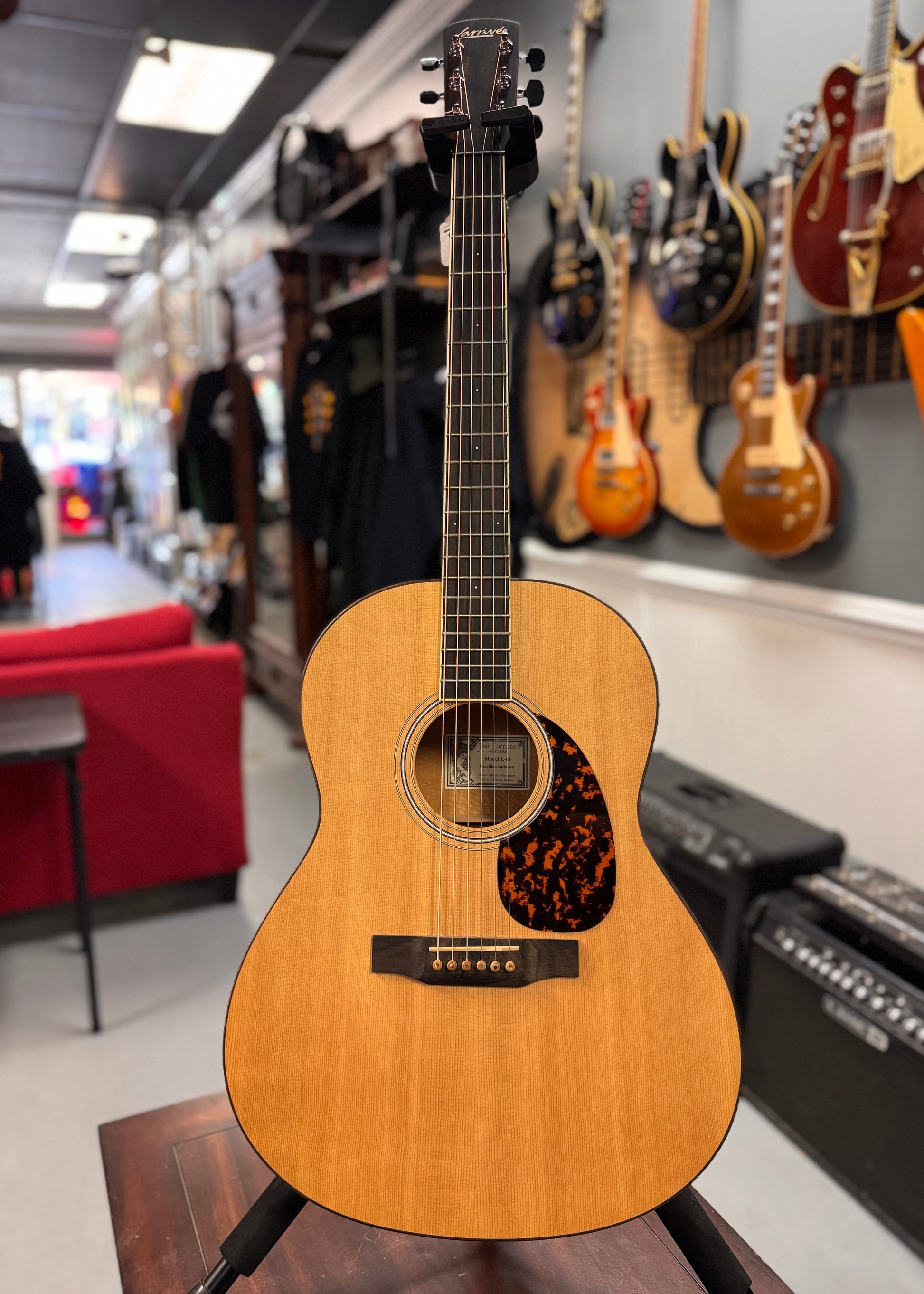 Longish (25.5) scale auditorium sized guitar. Mahogany Back & Sides, Spruce top. 1 3/4" nut width.